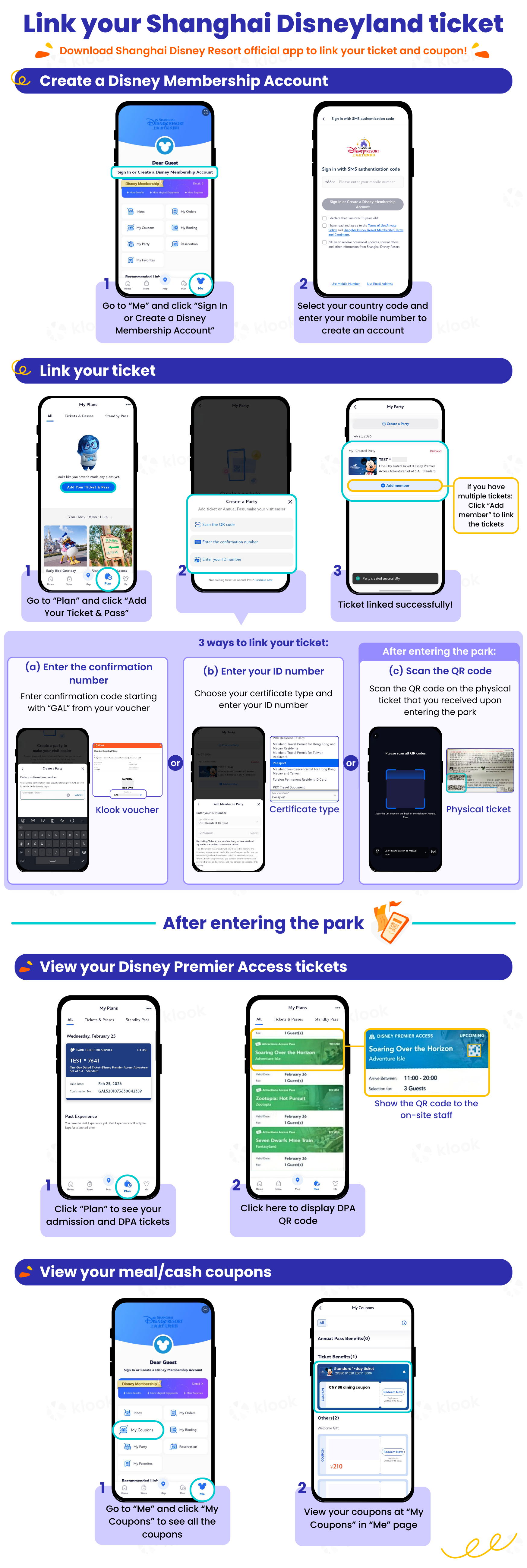 - (Optional) Download the official SHDL app and link your ticket using your passport number — this lets you purchase DPA or mobile-order food inside the park. Klook has a helpful step-by-step guide for linking your ticket.